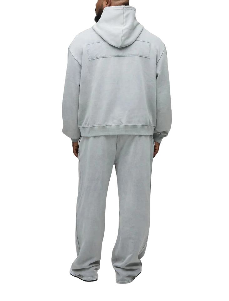 Ensemble survêtement homme gris personnalisé 100% coton lourd surdimensionné Jogger Ensemble ample Pantalon de survêtement et sweat-shirt empilés Ensemble d'hiver pour homme