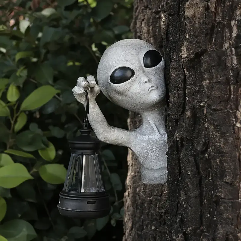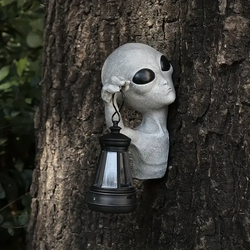 Statue extraterrestre en résine grise personnalisée Figurine extraterrestre peinte à la main lanterne motif Animal sur le thème de l'anime décor de jardin nautique