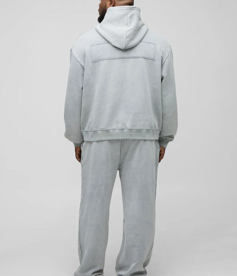 Survêtement gris personnalisé pour homme de haute qualité 100% coton ensemble de jogging à capuche épais pantalon de survêtement baggy empilé et ensemble à capuche pour hommes