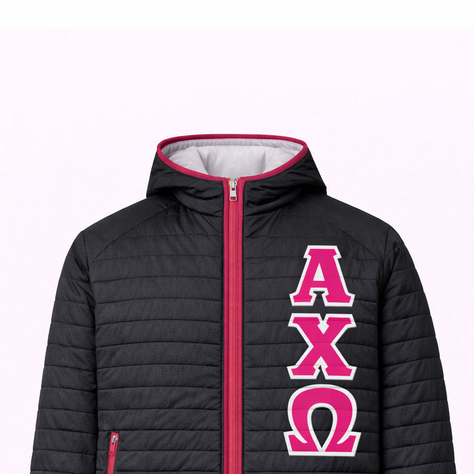 Veste matelassée grecque personnalisée pour fraternité, veste d'hiver matelassée avec logo brodé, fabricant OEM de vêtements grecs en gros