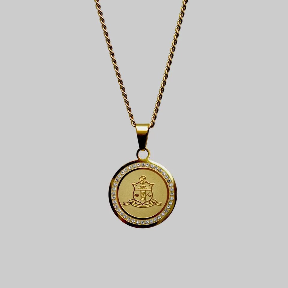 Collier pendentif bouclier personnalisé avec lettres grecques, pendentif blason, cadre en zircon, bijoux gravés sur mesure, médaille de fraternité et de sororité, cadeau