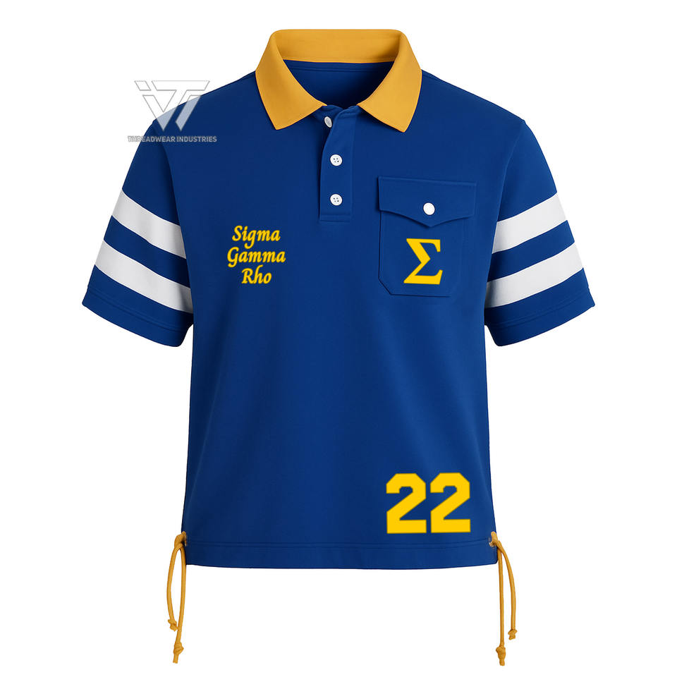 Vêtements de sororité Sigma Gamma Rho grecs personnalisés chemise à col brodée surdimensionnée en coton biologique