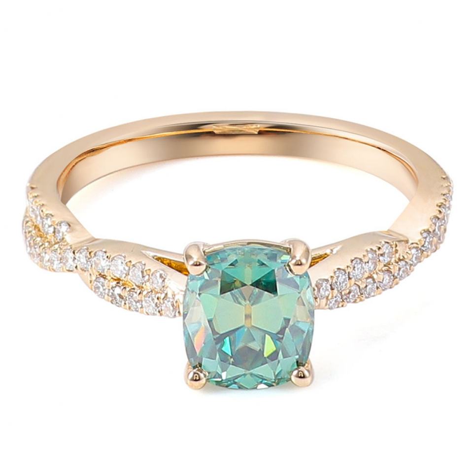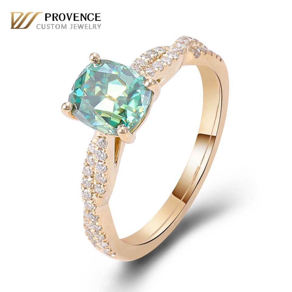 Bague en diamant vert personnalisée, or massif 14K 18K, alliances, bague de promesse, bijoux, bague en moissanite taille coussin, bague de fiançailles