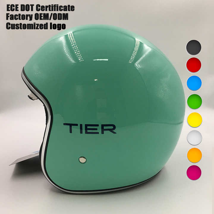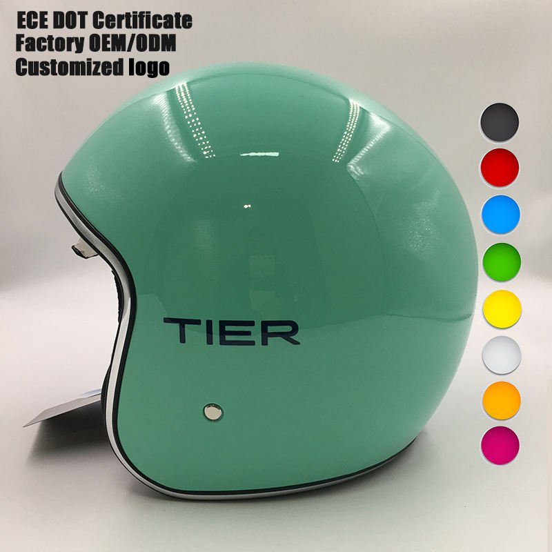 Casques vintage de couleur verte et noire approuvés par la CEE, casque de moto électrique rétro à visage ouvert, casque de scooter, moto