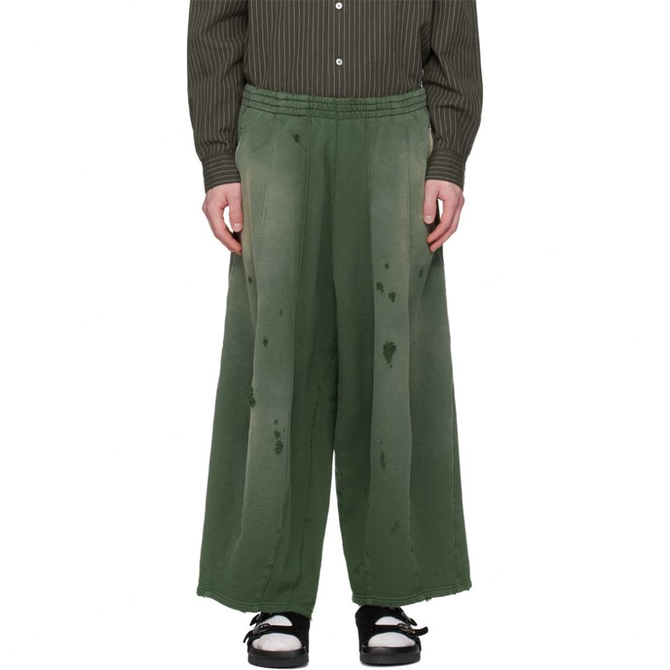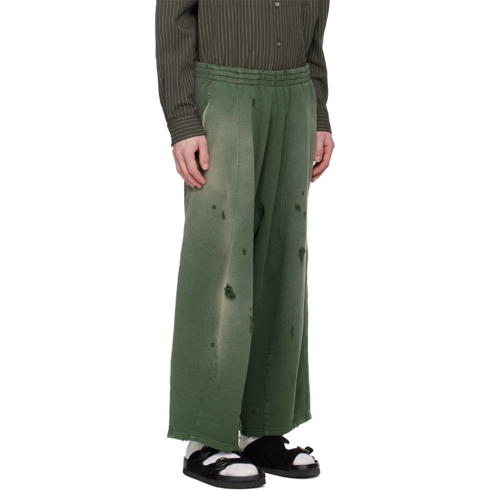 Pantalon de survêtement baggy décontracté en molleton français délavé vert vieilli avec détails de pointes, style sportif