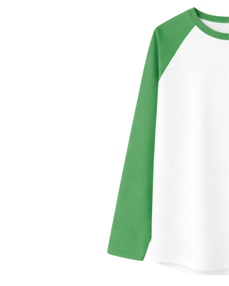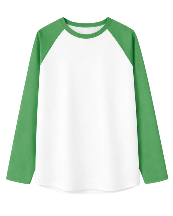 T-shirt à manches longues raglan vert et blanc personnalisé pour homme, en coton, décontracté, col rond contrastant, style baseball, fabricant et fournisseur OEM