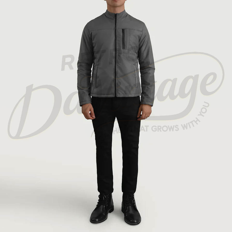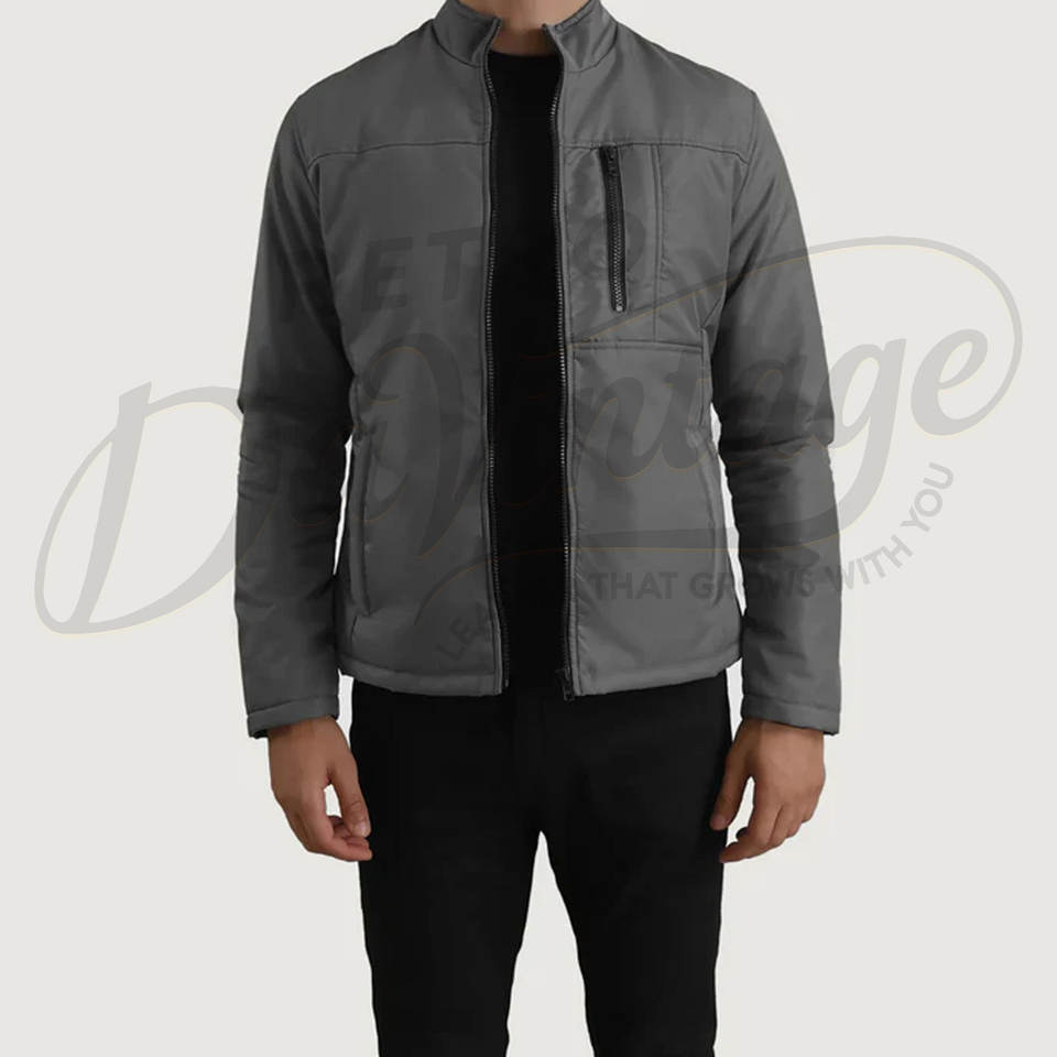 Blouson bomber gris personnalisé léger pour homme, coupe ajustée, coupe-vent décontracté, col montant, fermeture éclair, vêtements de sport et de mode pour l'extérieur