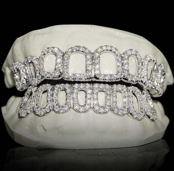 Couleur blanche Grillz personnalisée et poussière de diamant, coupe diamant, Hip Hop Grillz personnalisé, argent sterling Grillz 925, or 10K 14K