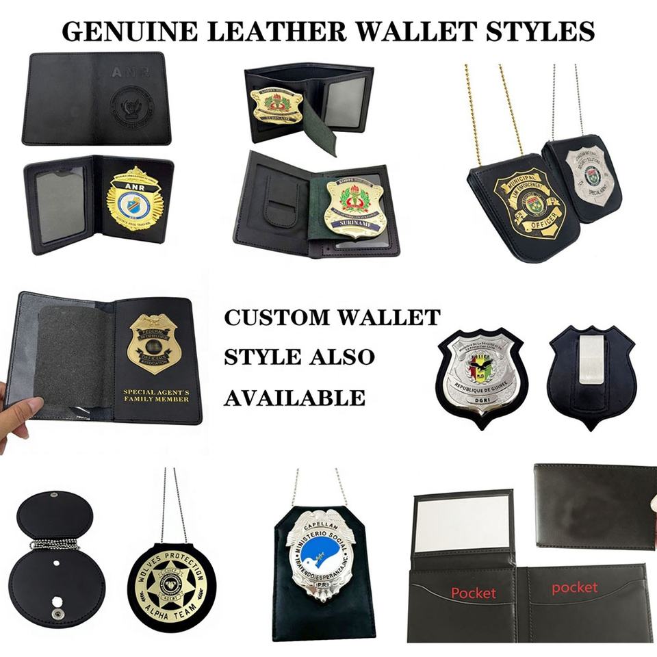 Insignes d'épaule personnalisés pour uniforme de garde avec porte-monnaie en cuir, guide métallique, insigne de sécurité, grand badge
