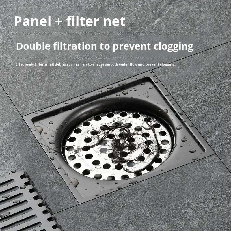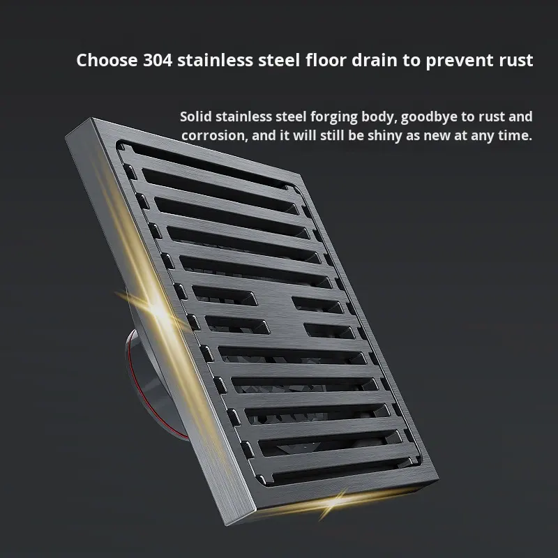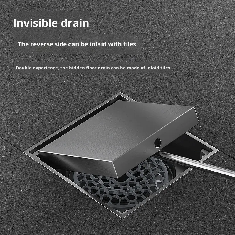 Siphon de sol carré moderne gris anthracite en acier inoxydable brossé, anti-odeur, grande capacité, pour salle de bain et douche