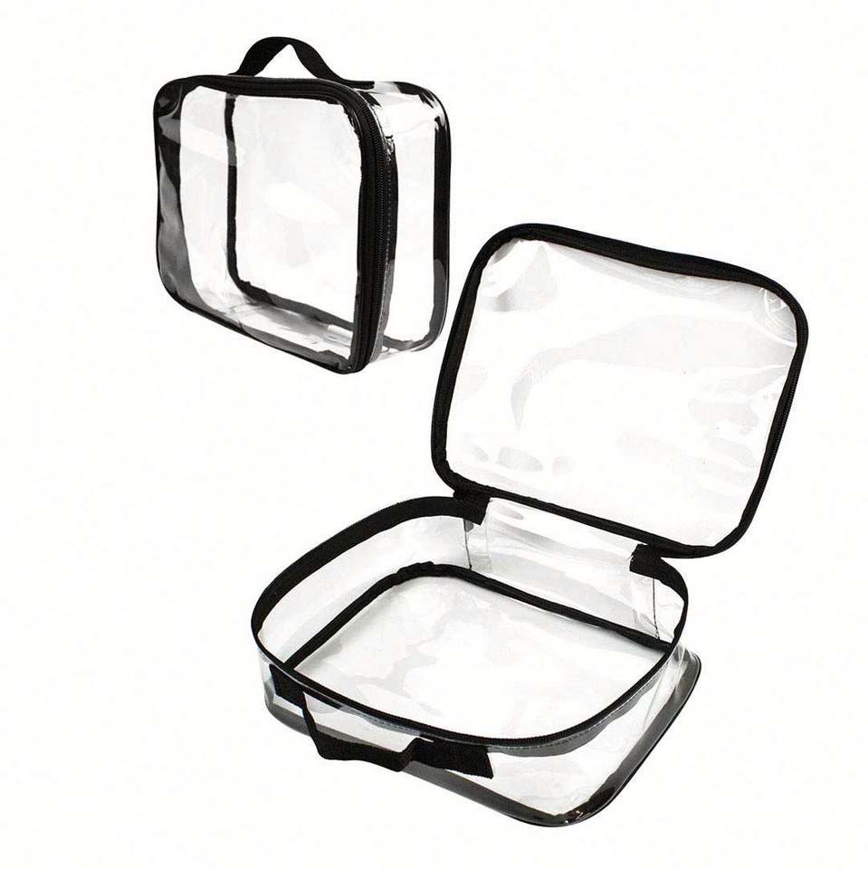 Ensemble de trousses de toilette transparentes en PVC grand format, personnalisables, pour la gym, la plage, le maquillage, recyclables, approuvées par la TSA, imperméables