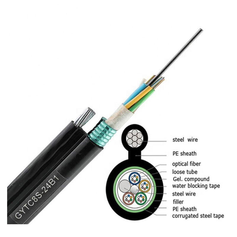 Câble Ethernet à fibre optique personnalisé Gytc8S, 12-24 cœurs, tube lâche, torsion, figure 8, autoportant, coaxial, RJ45, G652D, extérieur