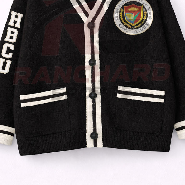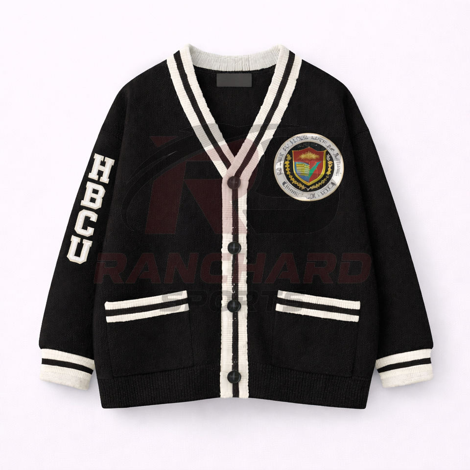 Cardigan universitaire personnalisé HBCU | Pull sans manches en tricot boutonné sur le devant | Vêtements de rue 100% coton écologiques