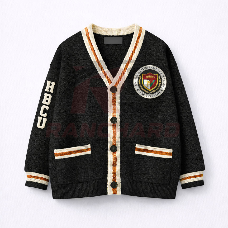 Cardigan universitaire personnalisé HBCU | Pull sans manches en tricot boutonné sur le devant | Vêtements de rue 100% coton écologiques