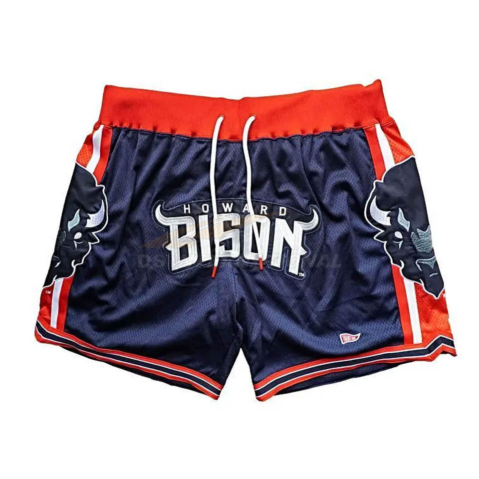 Short de basket-ball HOWARD BISON Elite personnalisé Short d'uniforme d'équipe officiel brodé de lettrage en sergé de qualité supérieure