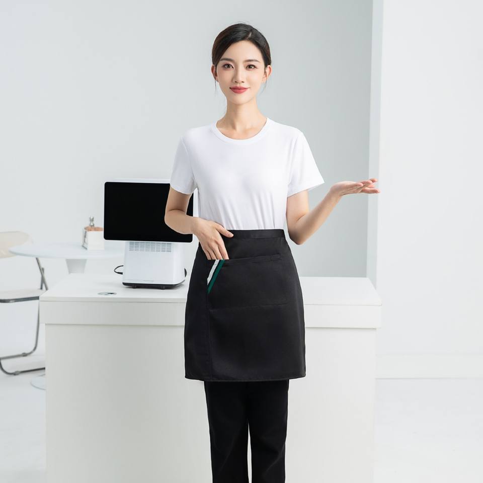 Demi-tablier personnalisé avec poche, couleur unie, imperméable, pour restaurant et bar