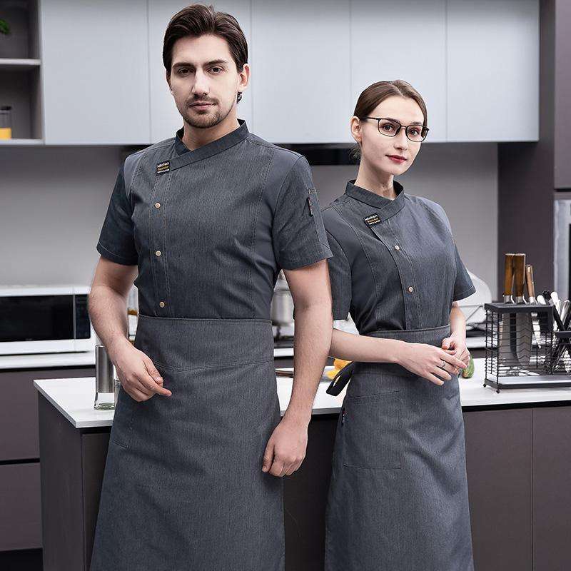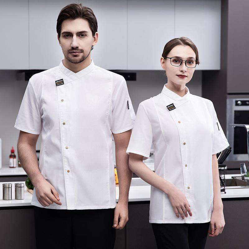 Veste de chef personnalisée pour homme, manches courtes, respirante, avec logo brodé personnalisé, uniforme de cuisine, restaurant, serveur