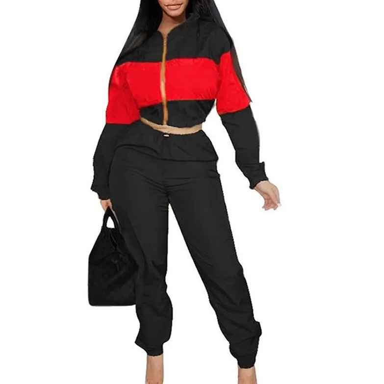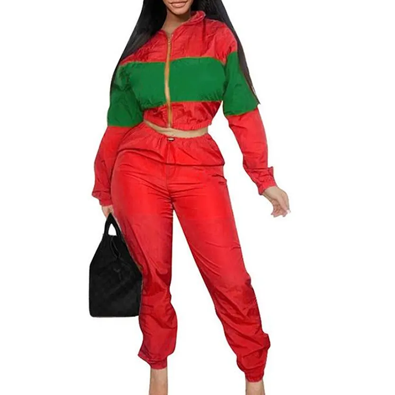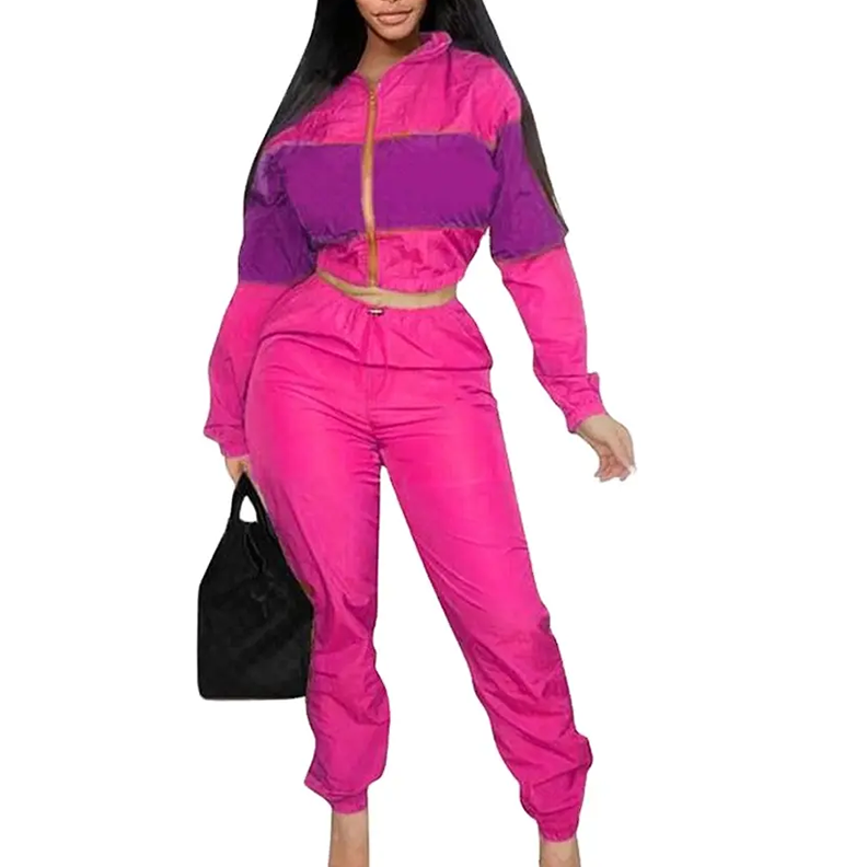 Pull-Over personnalisé à demi-fermeture éclair Survêtement Jogging Crop Top Coupe-Vent Veste Pantalon Deux Pièces Ensemble Femmes