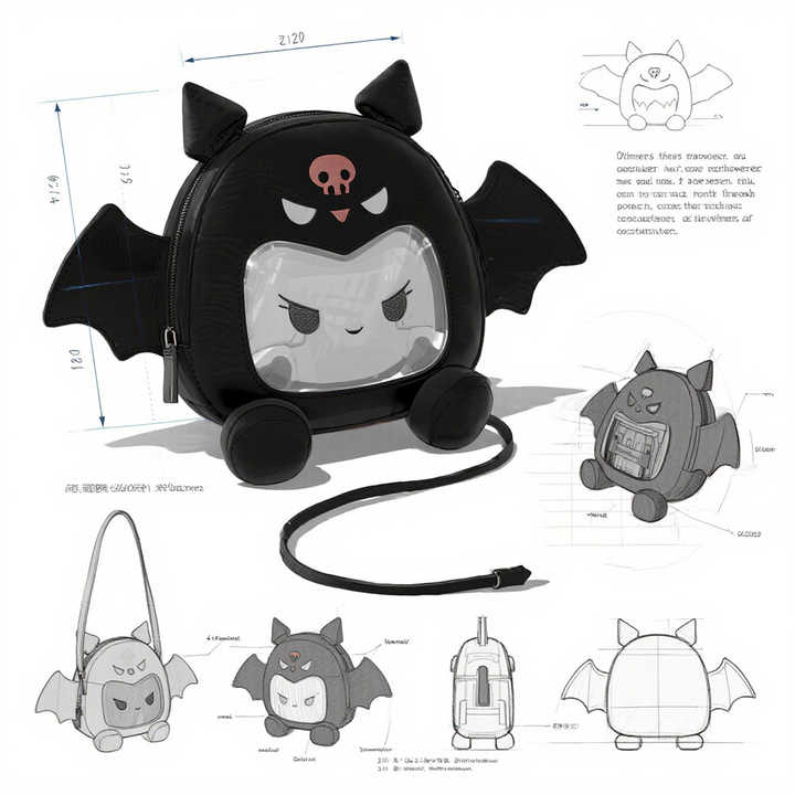 Sac Ita personnalisé en forme de chauve-souris gothique design avec fenêtre transparente sac à dos Ita personnalisé en forme de chauve-souris