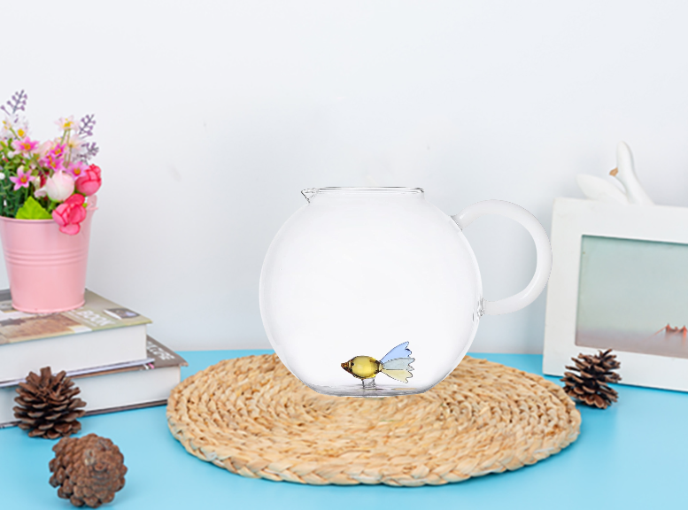 Pichet à eau en verre de poisson 3d résistant à la chaleur en borosilicate soufflé à la main personnalisé Pichet à eau en verre créatif