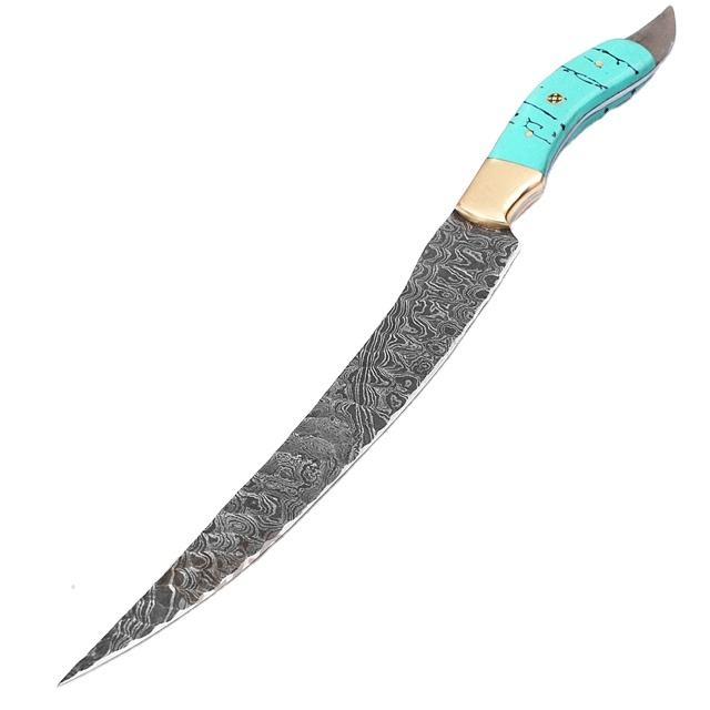 Grandsharp — couteau à filet de damas forgé à la main, avec housse fourreau en cuir (smk1638)