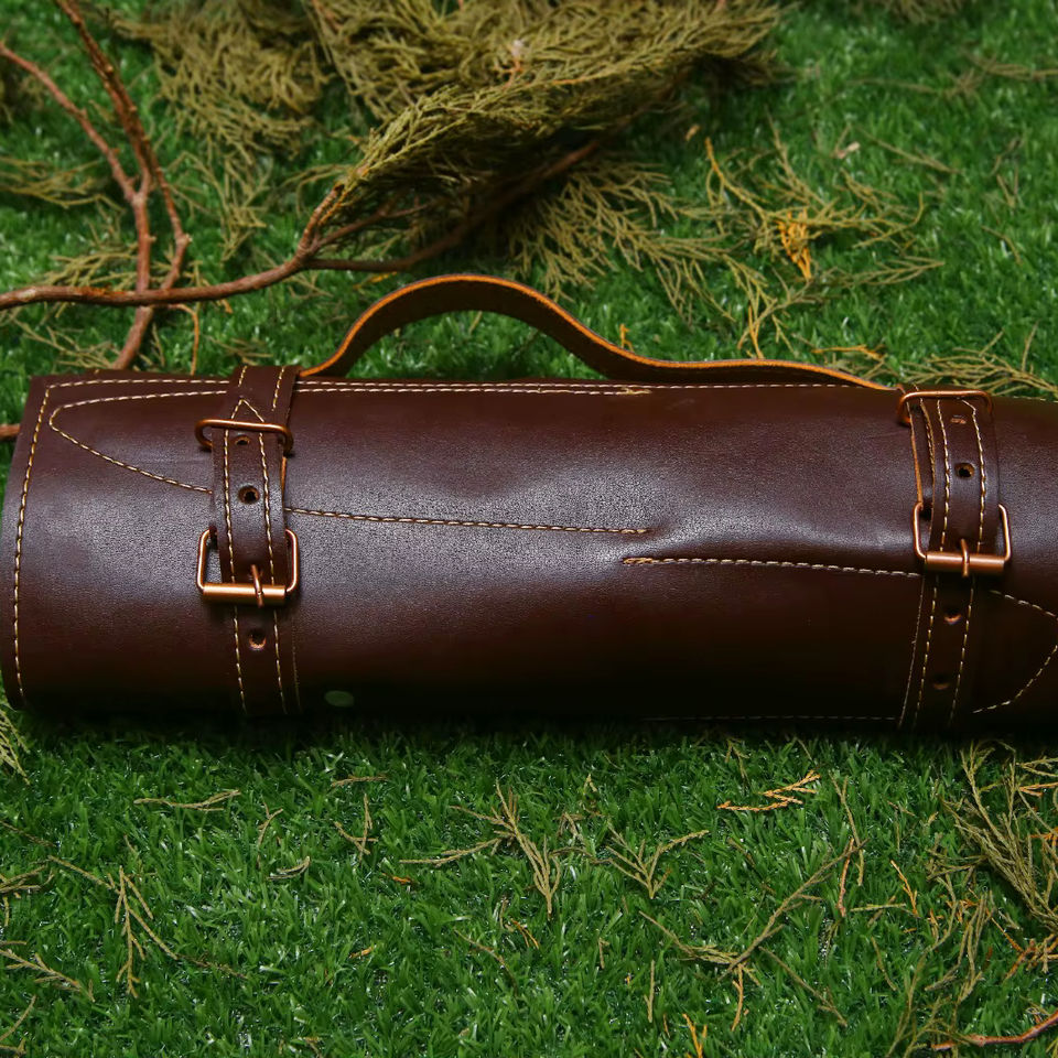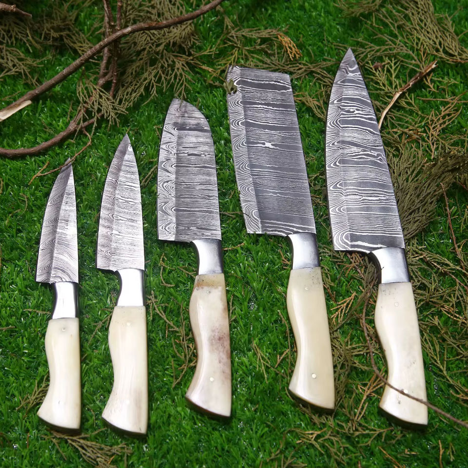 Ensemble de couteaux de cuisine en acier damas forgé à la main, 5 pièces, avec manche en os et sac en cuir