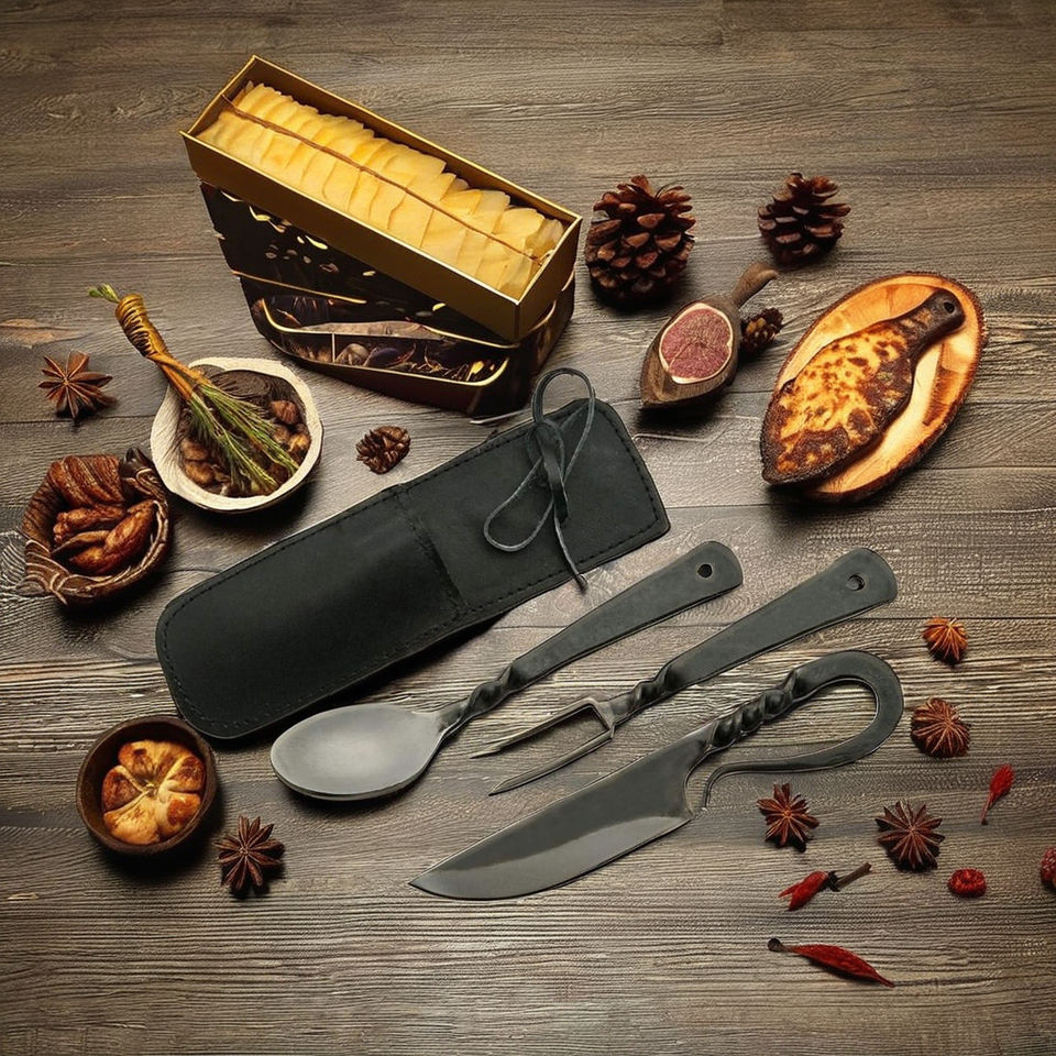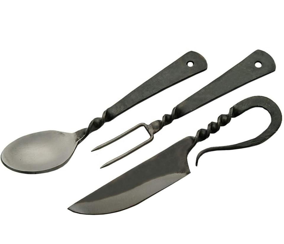 Ensemble de couverts médiévaux de 3 pièces forgés à la main personnalisés Couteaux pour le festin et le camping Couteau fourchette cuillère adapté OEM