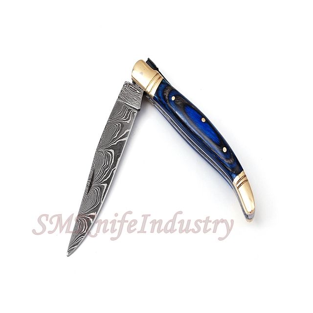 Couteau de poche pliant fait main de damas avec étui en cuir (smk1271), couteau multifonctionnel en acier, couteaux Sm de couleur bois