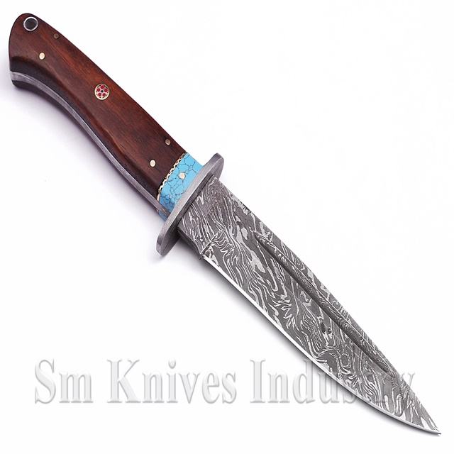 Couteau de chasse artisanal en acier Damas avec intercalaire en pierre turquoise (Smk1347)