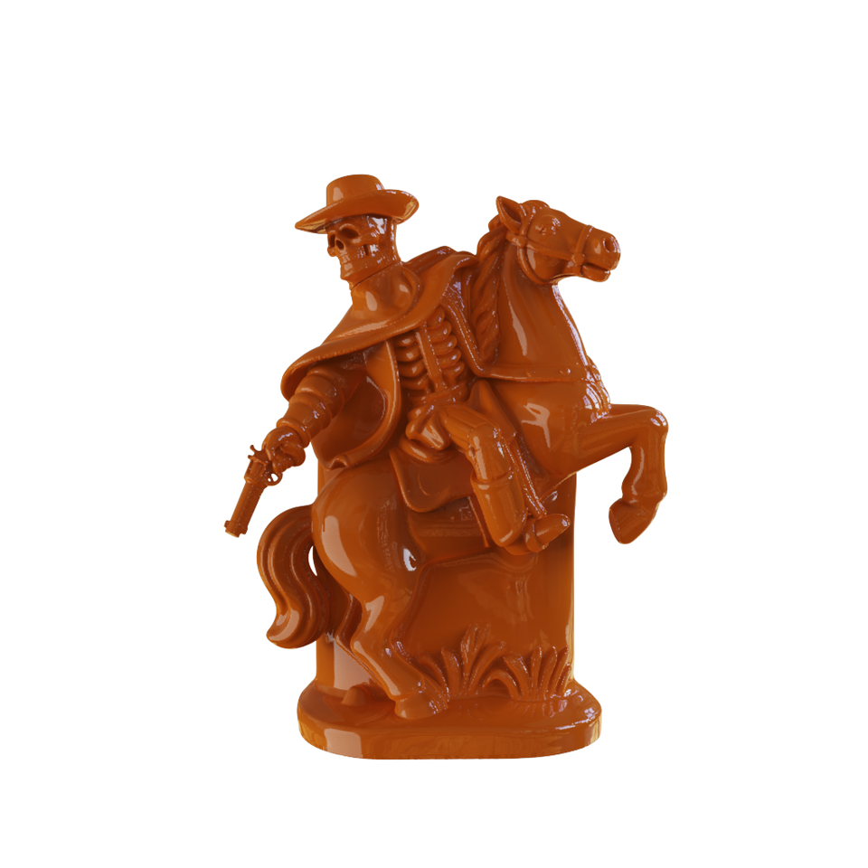 Bouteille d'alcool en céramique personnalisée, peinte à la main, avec un squelette de cowboy occidental brun glacé sur un cheval debout, figurine de personnage