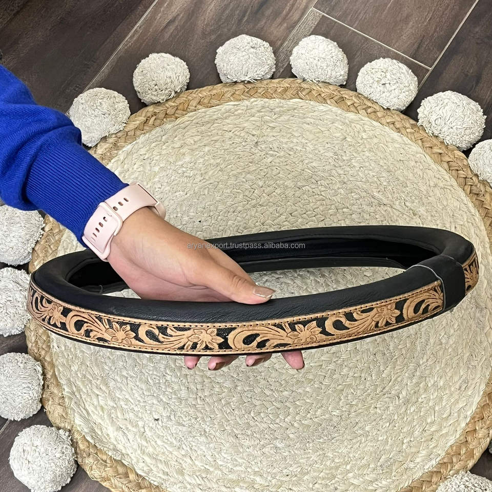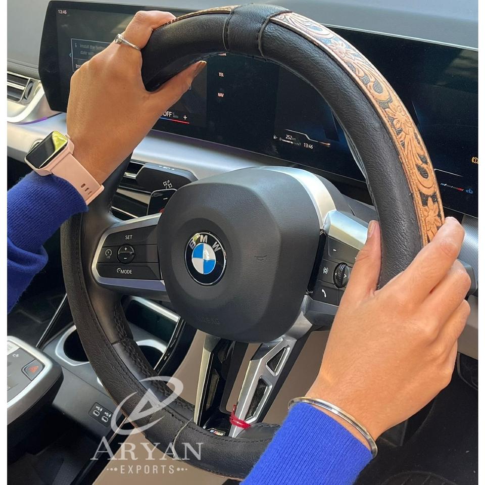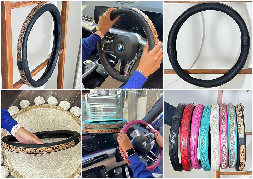 Couvre-volant en cuir véritable, travaillé à la main