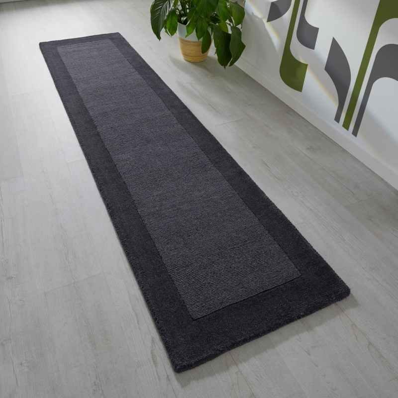 Tapis en laine de Nouvelle-Zélande fait main et tufté sur mesure | Tapis d'appoint minimaliste Deep Plum à bordures pour hall d'hôtel et projets résidentiels