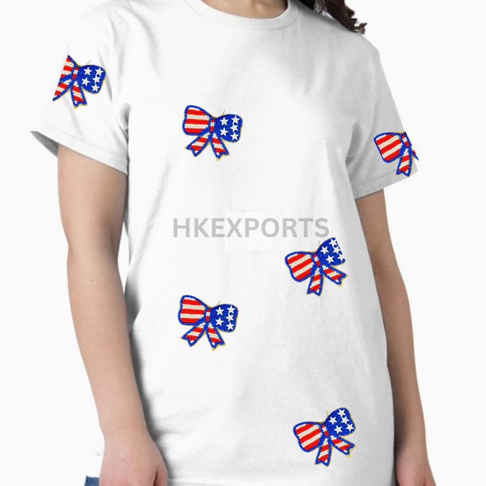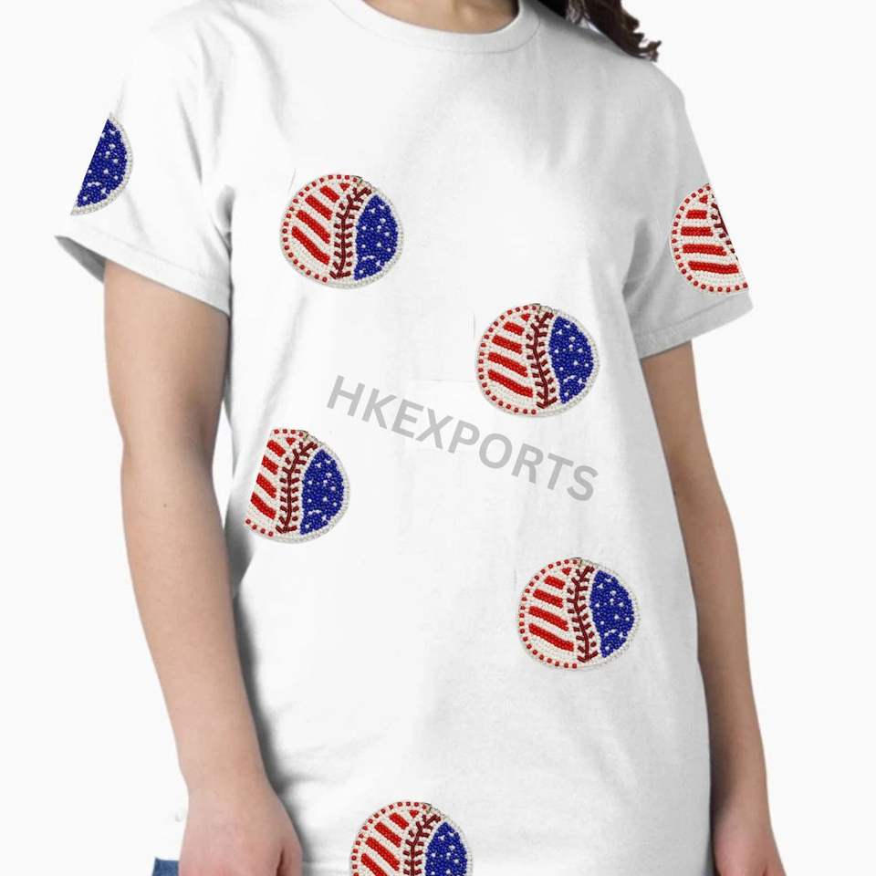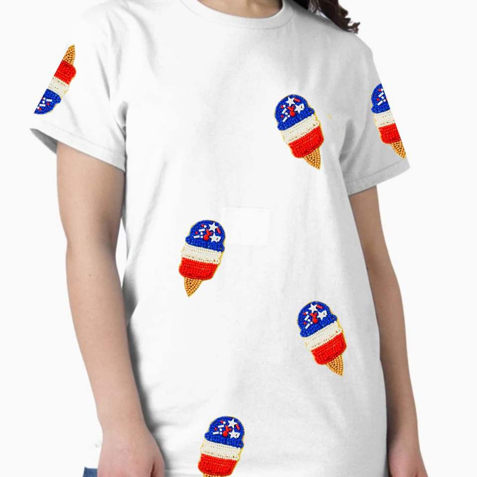 Fabriqués à la main personnalisé rouge blanc bleu Popsicles perlé lin T-Shirt 4 juillet gros patriotique Streetwear amusant Popsicles conception