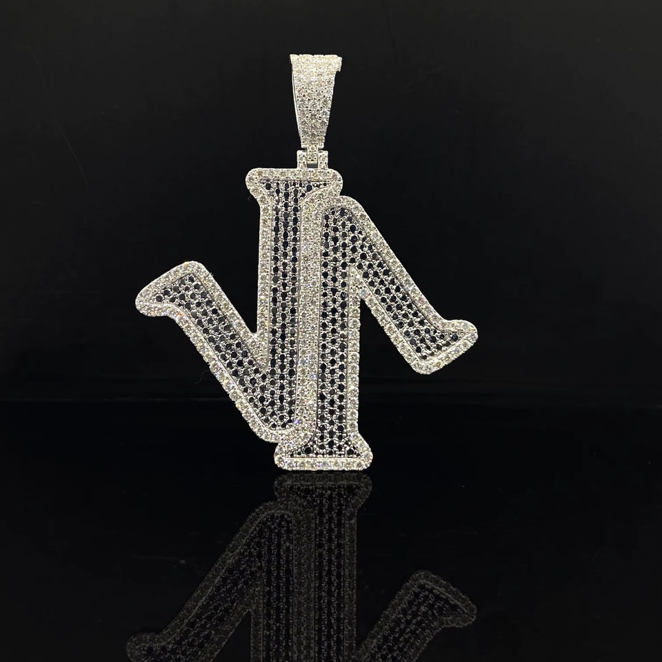 Pendentif unisexe personnalisé fait main en acier inoxydable plaqué rhodium imitation diamant, style hip-hop glacé, collection Ice Legacy