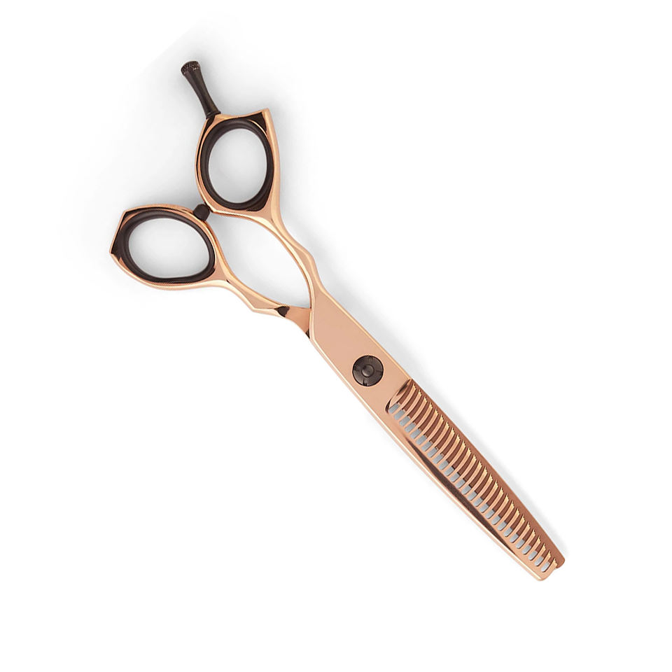 Ciseaux à effiler les cheveux de coiffeur à poignée personnalisée Ciseaux à effiler les cheveux antidérapants en or rose avec repose-doigt noir
