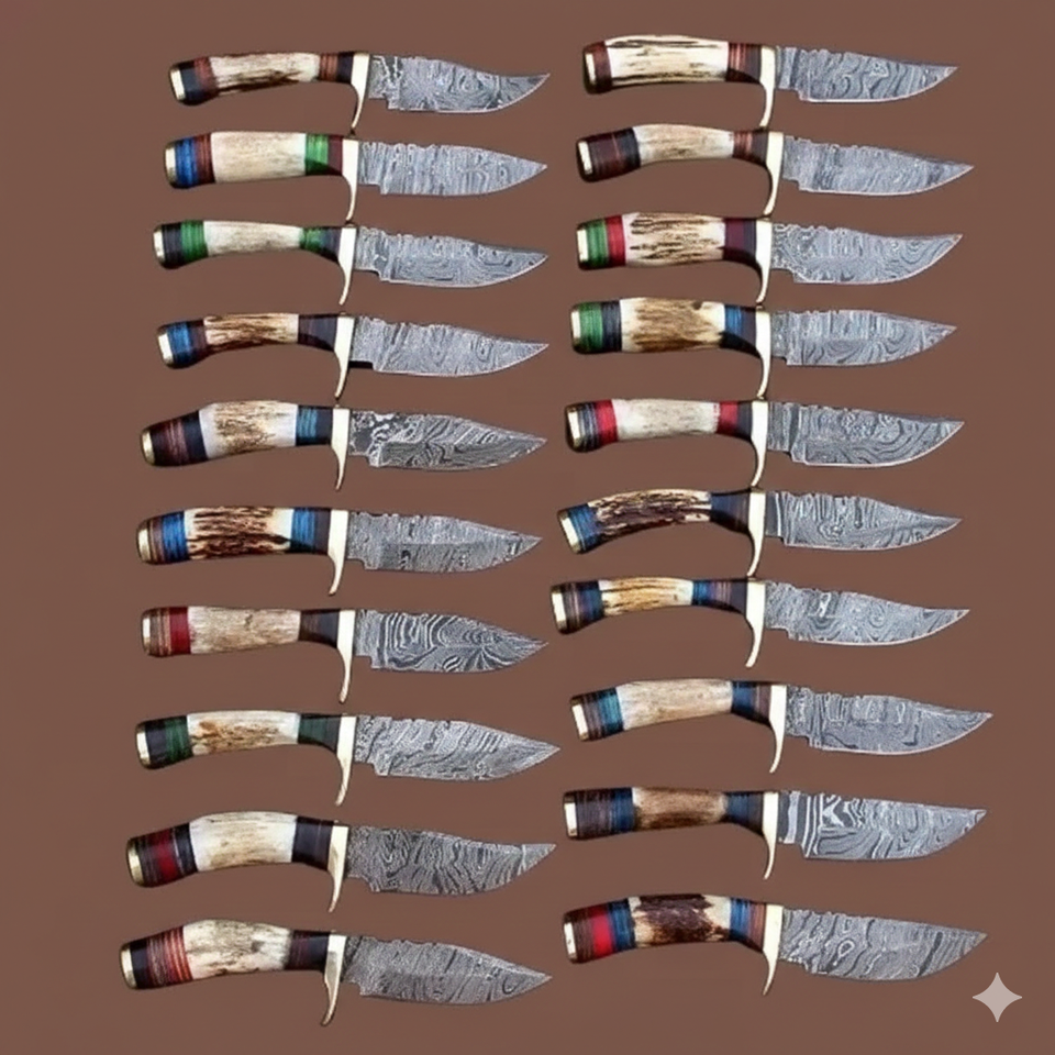 Couteau de chasse artisanal en acier Damas de 8 pouces, manche en corne de cerf, dureté 58HRC, garantie 3 ans, DIY, industriel, OEM/ODM, avec clip