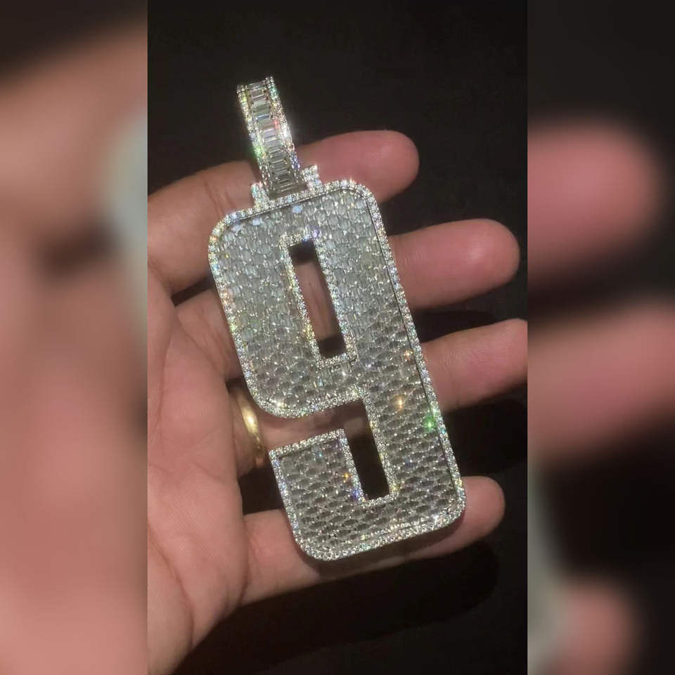 Pendentif en argent sterling 925 glacé numéro 9 fait à la main personnalisé collier de fête unisexe en or blanc plaqué or diamant bling