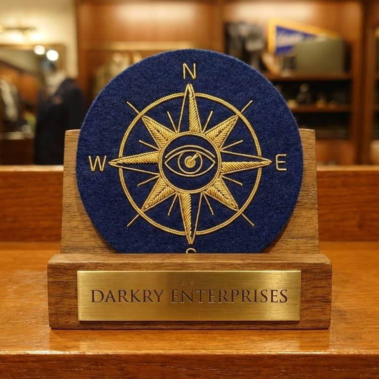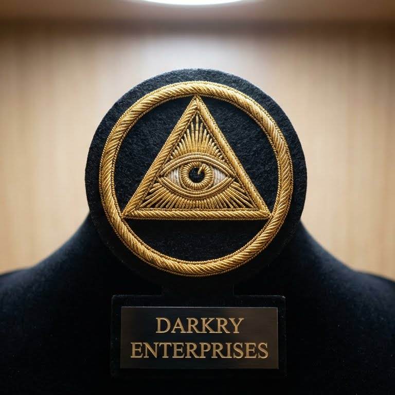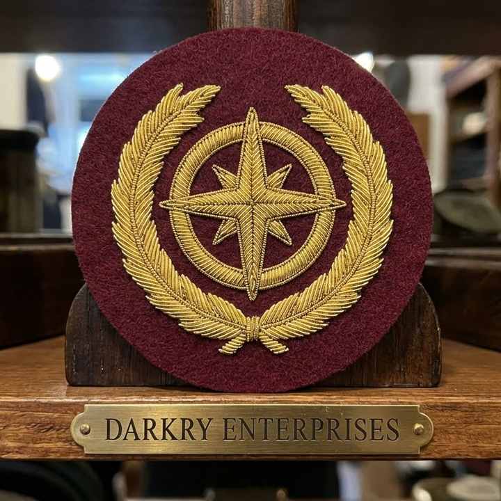 Badge maçonnique personnalisé fait main en fil de bullion, écusson ovale Compas Étoile, broderie dorée, bordeaux, vente en gros
