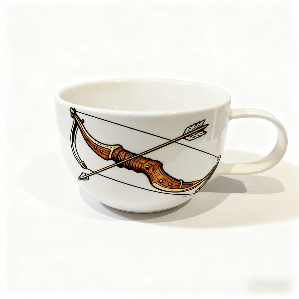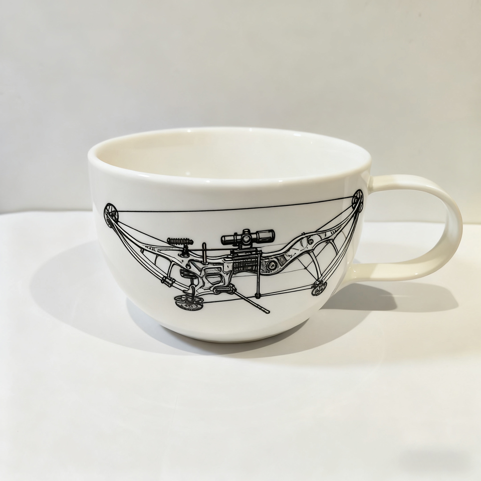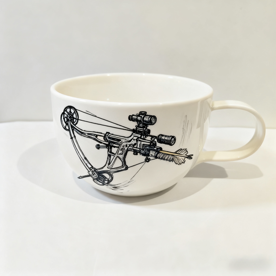 Mug à café en céramique fait main - Design d'arc à poulies de tir à l'arc peint à la main - Cadeau de vacances parfait