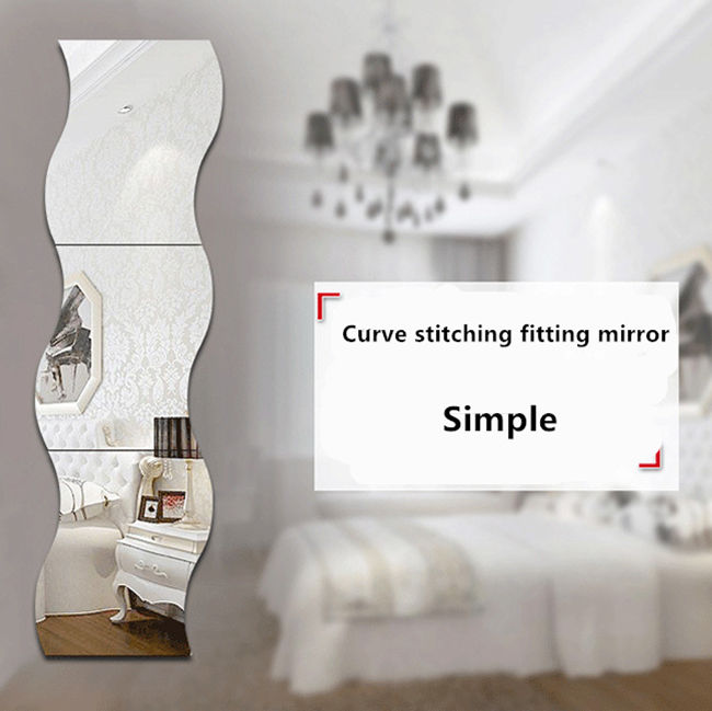 Miroir mural en aluminium ondulé en forme de S, décoration d'intérieur contemporaine faite à la main, avec papier auto-adhésif décoratif