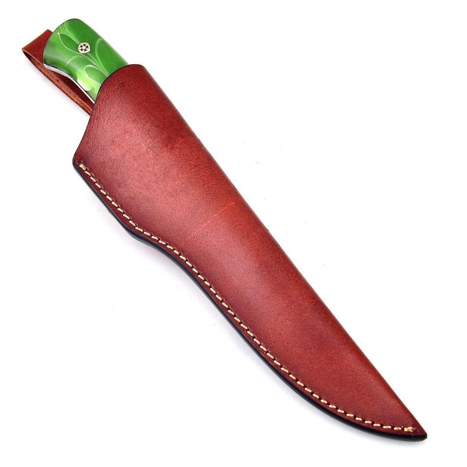 Couteau de chef en damas fait à la main personnalisé couteau à désosser avec manche en bois et étui en cuir