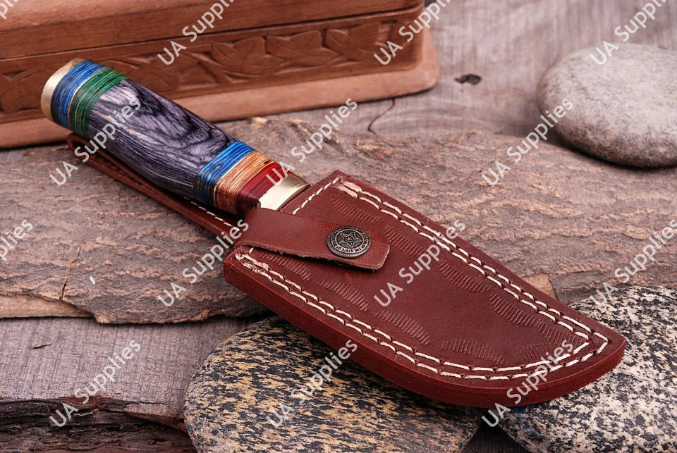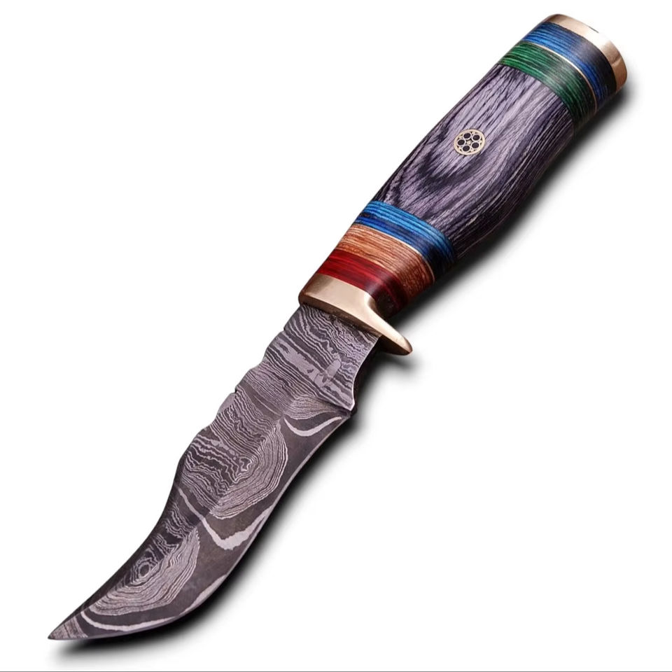 Couteau de chasse et de camping à lame fixe en acier Damas fait main, manche ergonomique en bois Pakka, support OEM/ODM, vente en gros