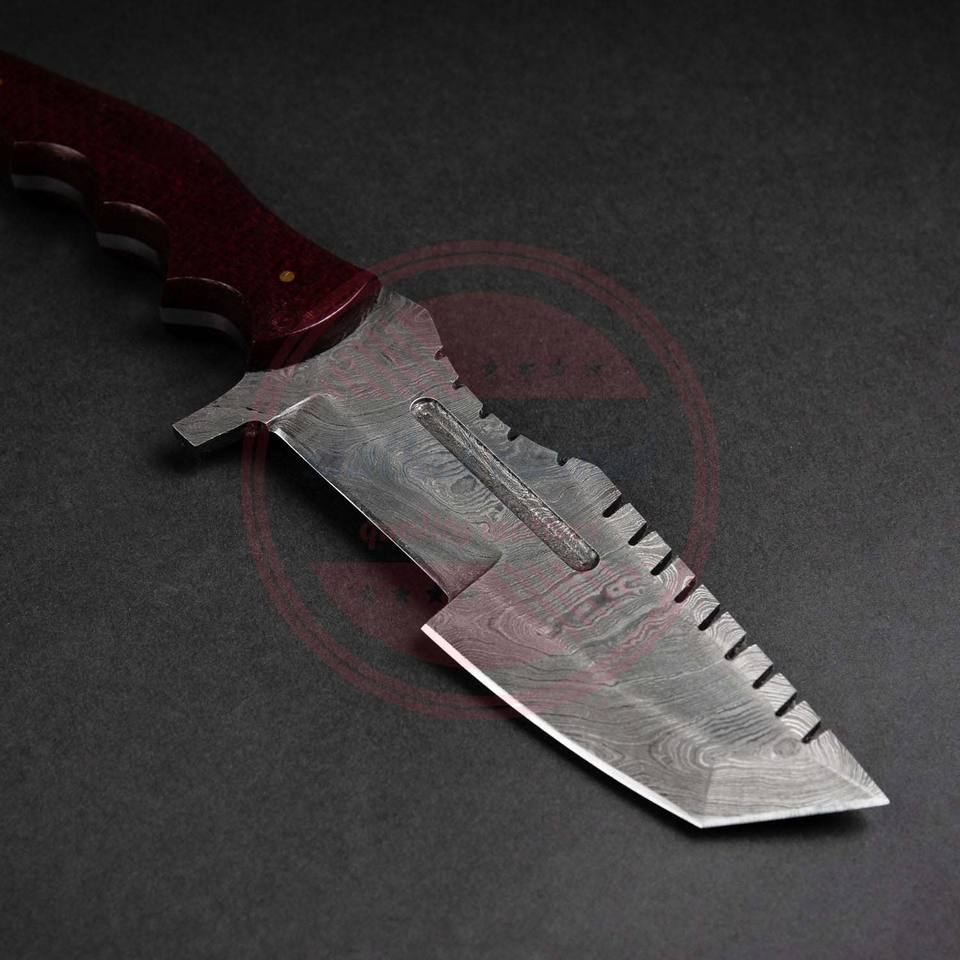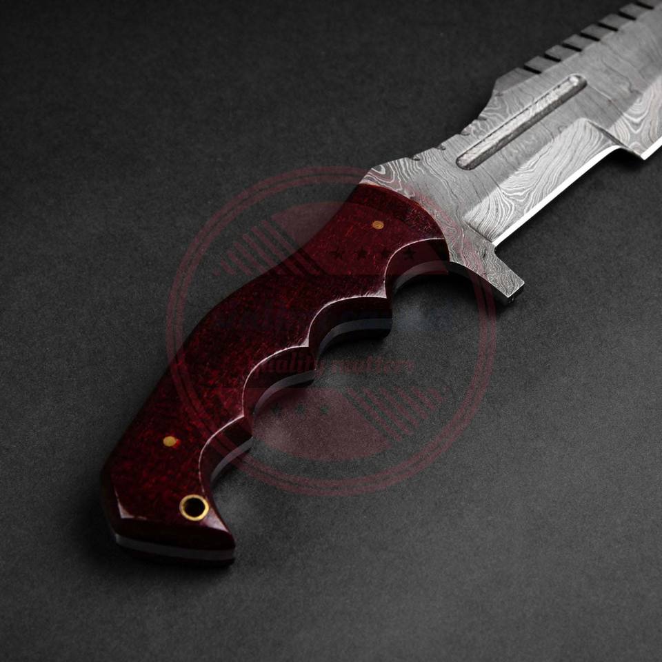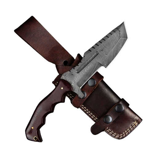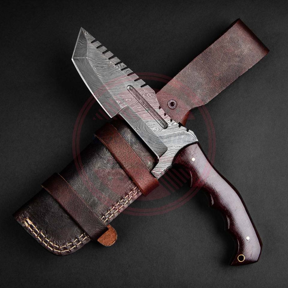 Couteau de chasse en acier damas fait à la main personnalisé avec étui en cuir couteau de camping en gros avec manche en bois