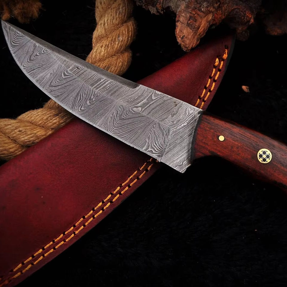 Personnalisé fait à la main en acier damas multifonction extérieur Camping Skinner couteau partiellement dentelé bord manche en bois mosaïque broche