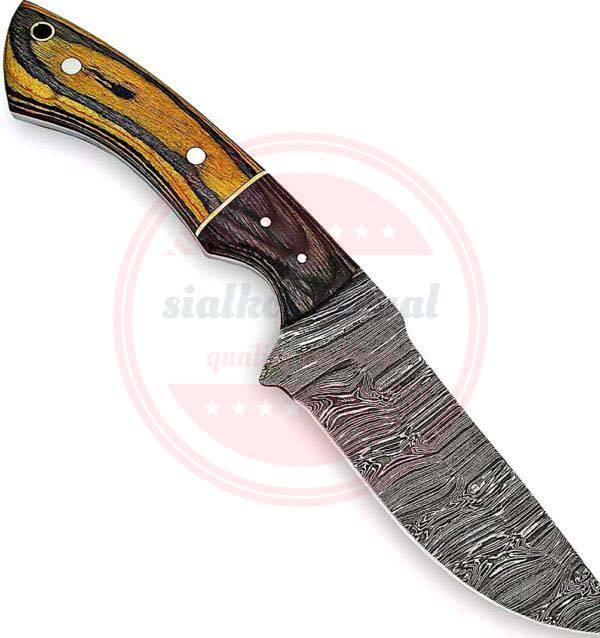 Couteau de chasse Skinner en acier Damas fait à la main personnalisé \ couteau Skinner à lame tranchante fixe avec manche en bois