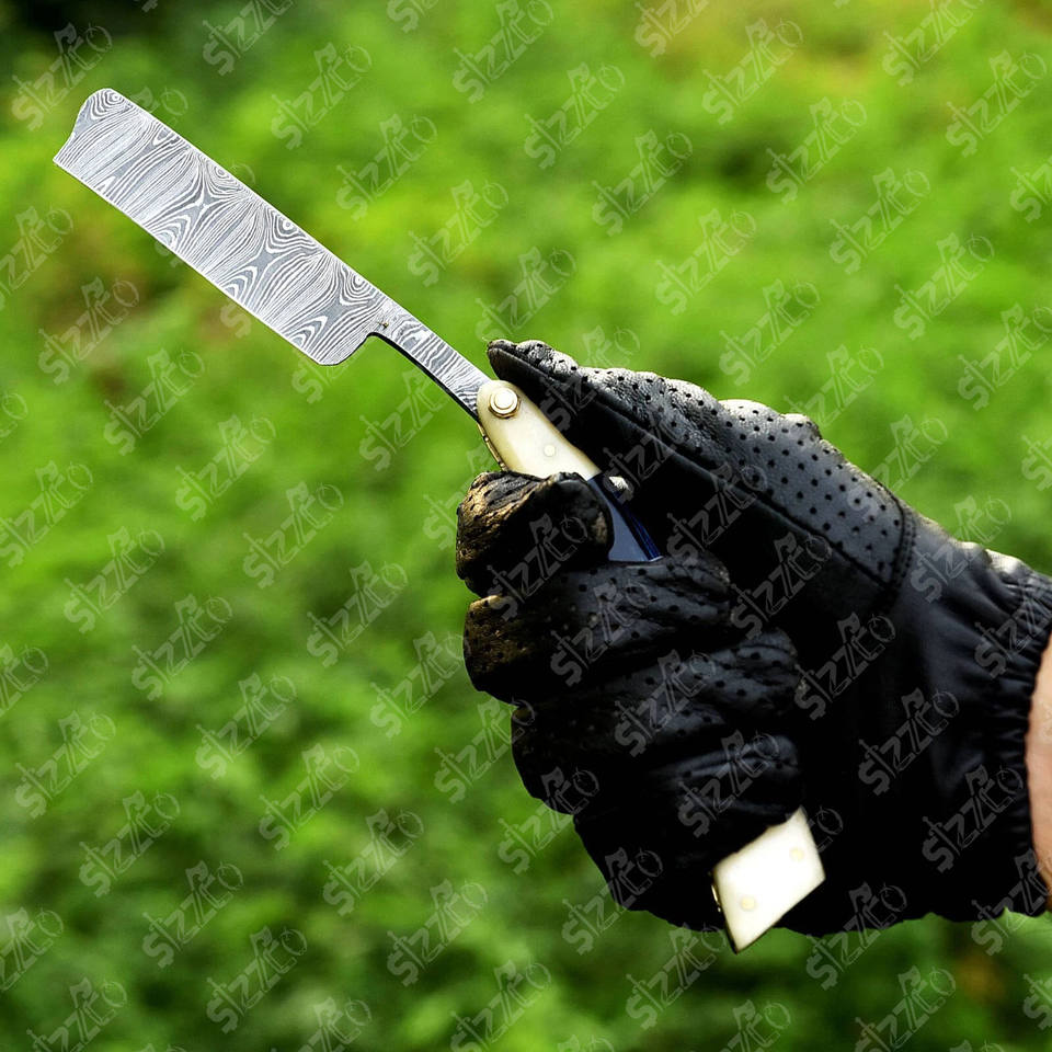 Rasoir droit en acier damas fait à la main personnalisé, manche en os, poignée parfaite, gaine en cuir gratuite, cadeau idéal pour lui