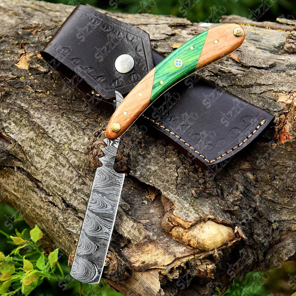 Rasoir droit en acier Damas fait à la main personnalisé, manche en bois, poignée parfaite, étui en cuir gratuit, cadeau idéal pour lui