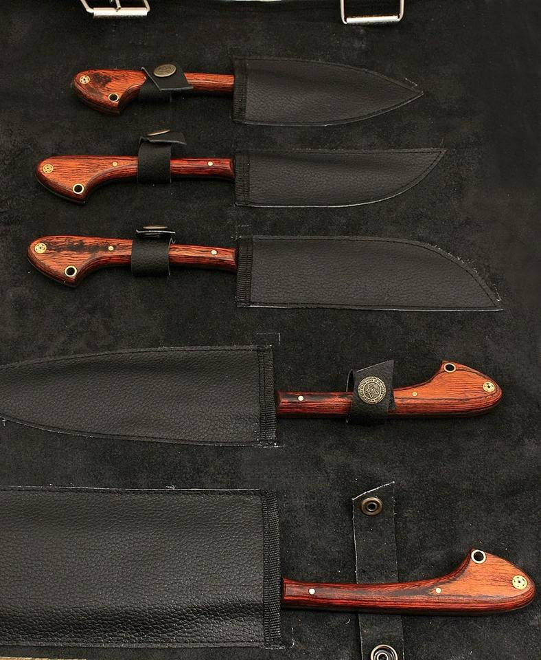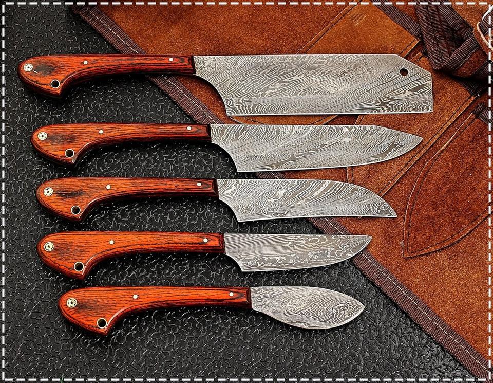 Custom Handmade Eco-Friendly Carbon Steel Sustainable 5-Piece Professional Chef Kitchen Set Wooden Handles Leather Case KNIVES