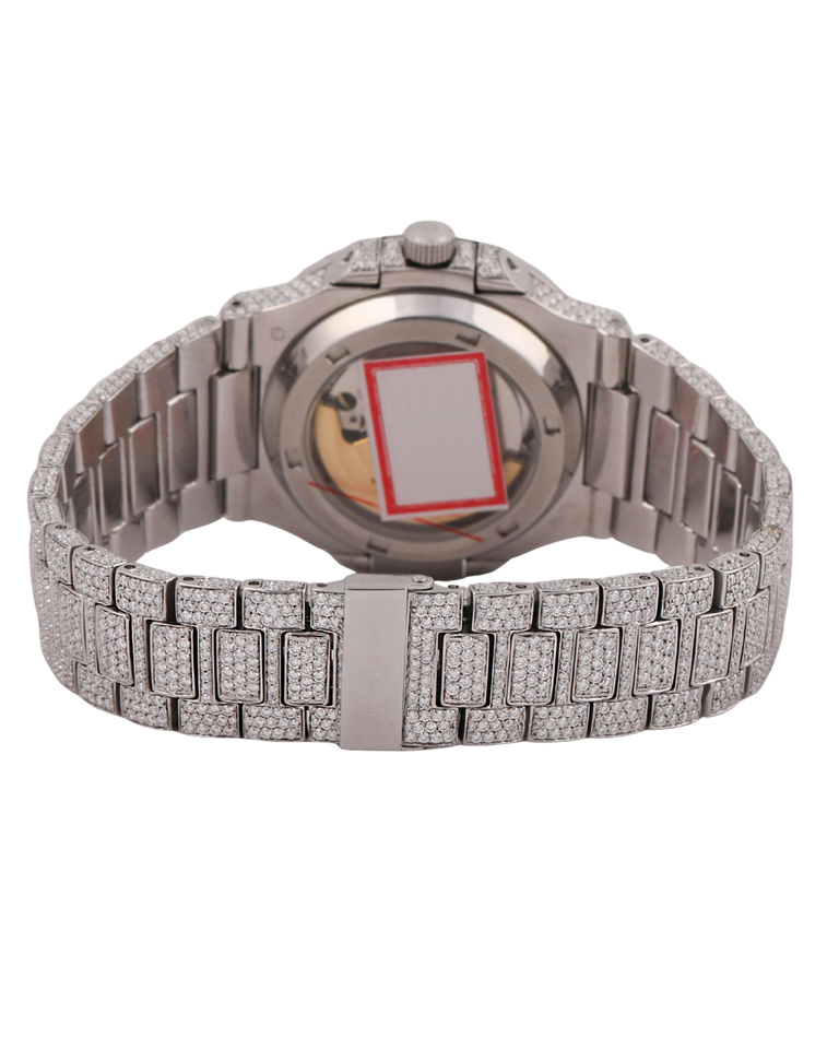 Montre-bracelet mécanique pour homme personnalisée, entièrement en or blanc, sertie de diamants Moissanite VVS, cadran blanc, fabriquée à la main