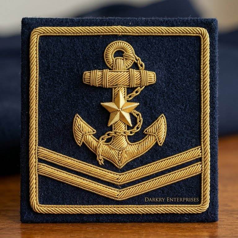 Écusson personnalisé fait main en fil d'or, motif couronne, ancre, épée, emblème, pour blazer, casquette, uniforme, service d'étiquetage artisanal de luxe